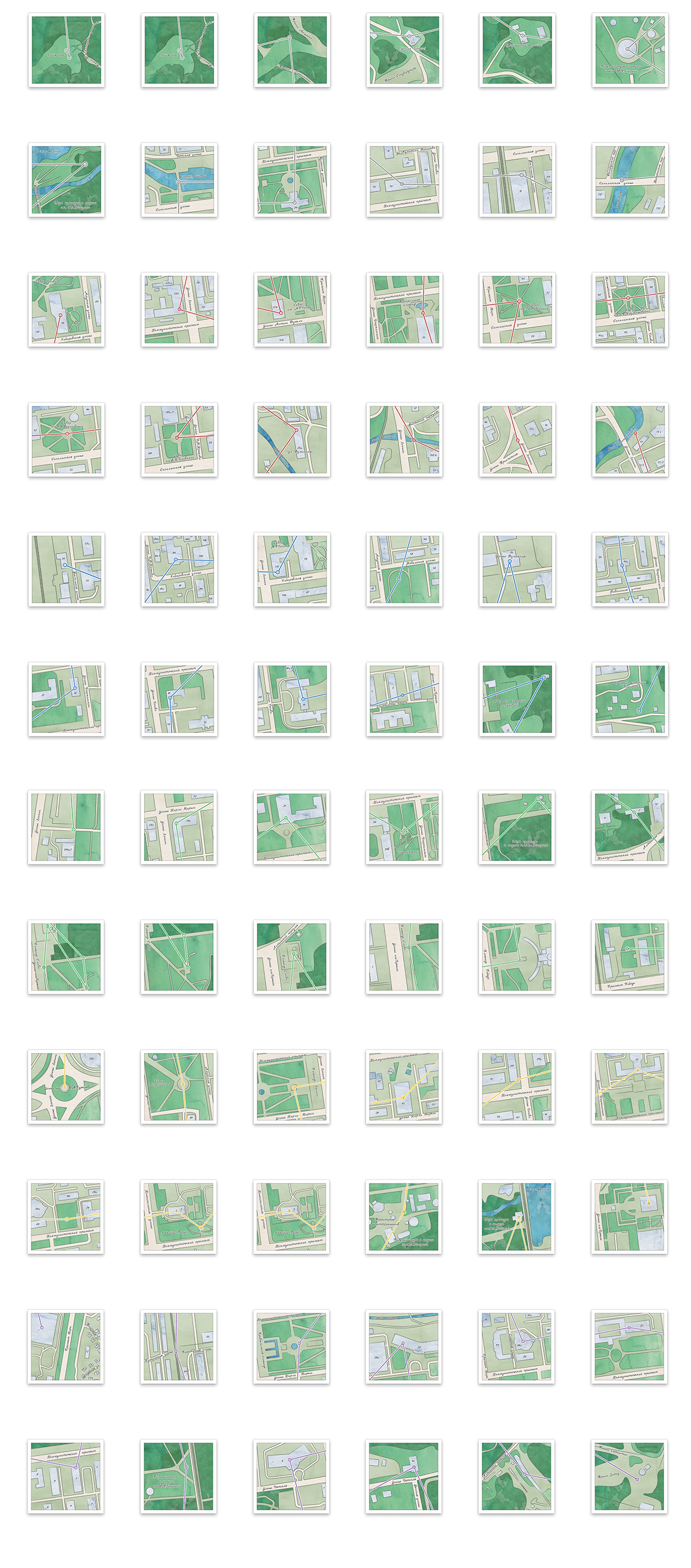 Фрагменты большой отрисованной карты Южно-Сахалинска со всеми станциями Метро Времени.
